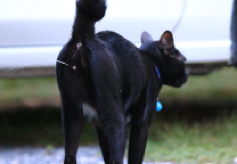 Le chat urine en position accroupie, parfois debout mais dans ce cas la queue est immobile.