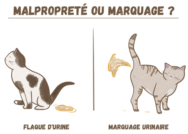 Le marquage urinaire est utilisé par les chats pour exprimer leur statut sexuel, leur territorialisation mais aussi lors des stress ou de problèmes de santé.